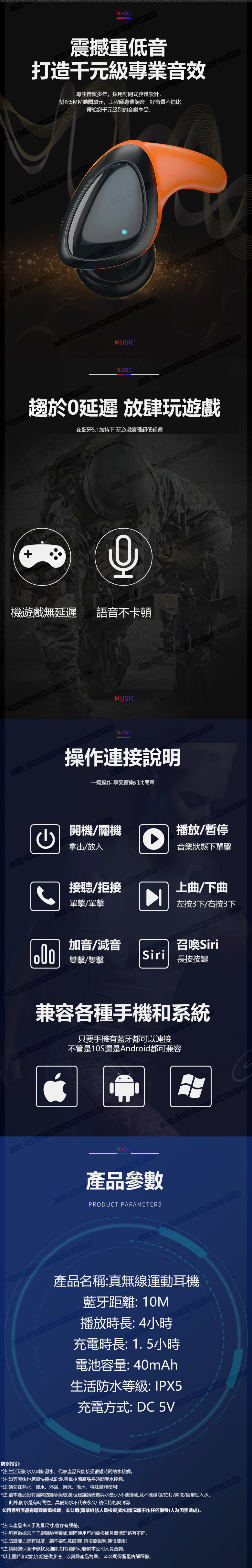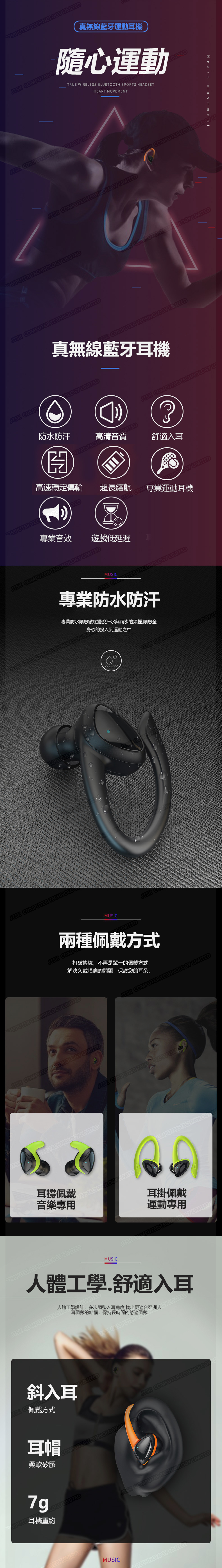 日本TSK TWS真無線運動藍牙耳機掛耳入耳式兩用迷你降噪低延遲遊戲藍牙耳機 P3758