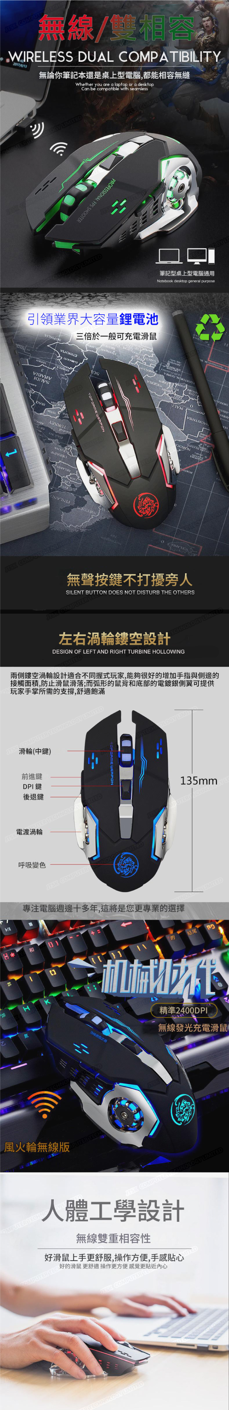 日本TSK 無線藍牙雙模充電靜音發光遊戲滑鼠 鼠標 P2617