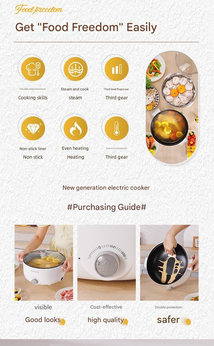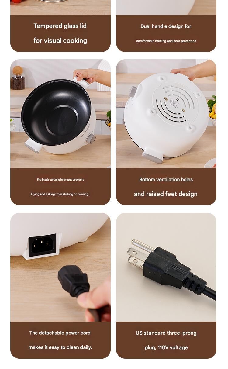 (美國專用美規)大容量電火鍋多功能電煮鍋宿舍家用電熱鍋不沾電炒鍋