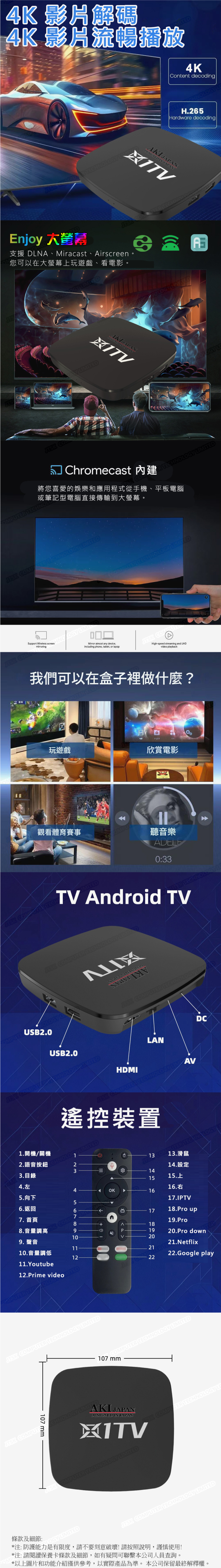 日本AKI - HD 4K極速網絡智能電視盒 A0215 4K電視盒 網絡機頂盒 智能電視盒 海量影視 流暢播放 多功能電視盒