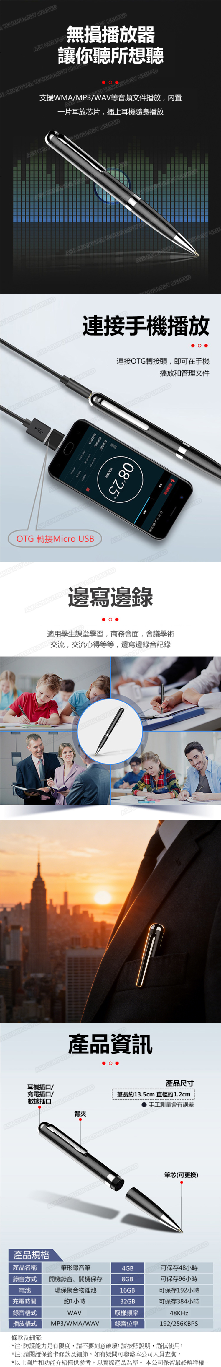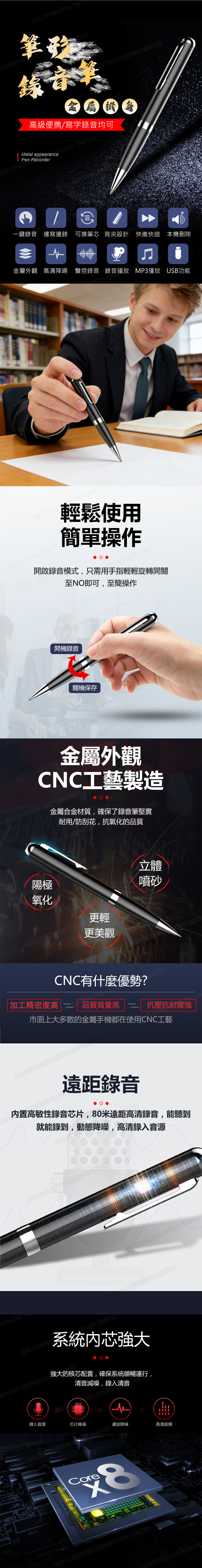 日本JTSK 筆形專業高清降噪錄音筆 可寫字可錄音內置8G