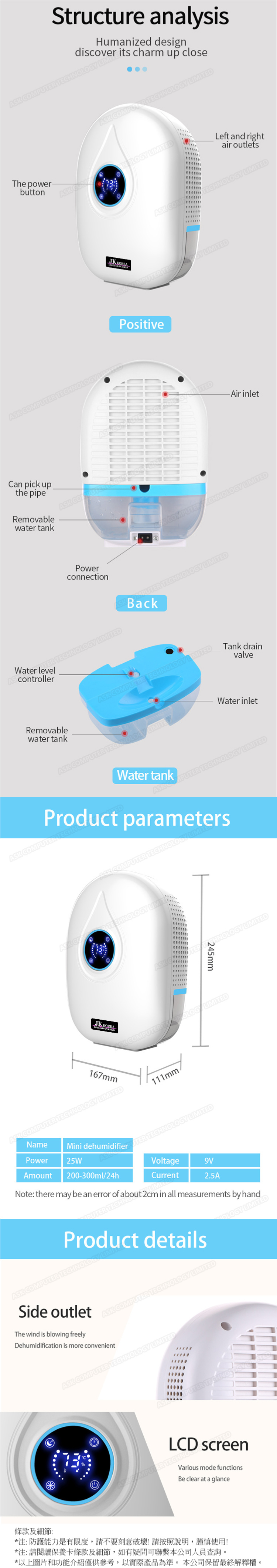 韓國JK 智能定時顯示家用迷你除濕機 (J0275)