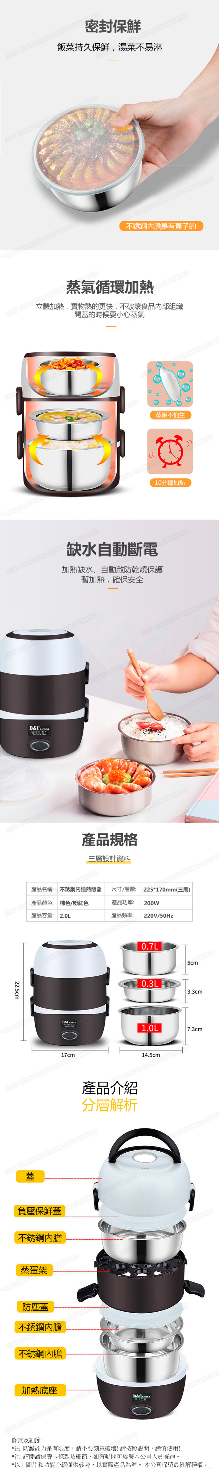 韓國B&C 家用蒸煮一體電熱飯盒 不銹鋼內膽保溫熱飯器