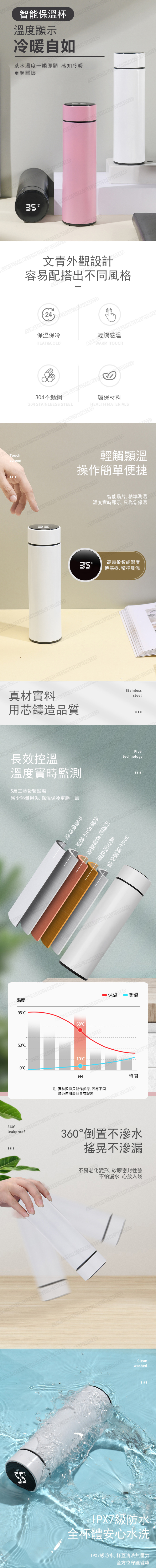 韓國B&C 智能LED溫度顯示不銹鋼保溫杯 直身溫控水杯