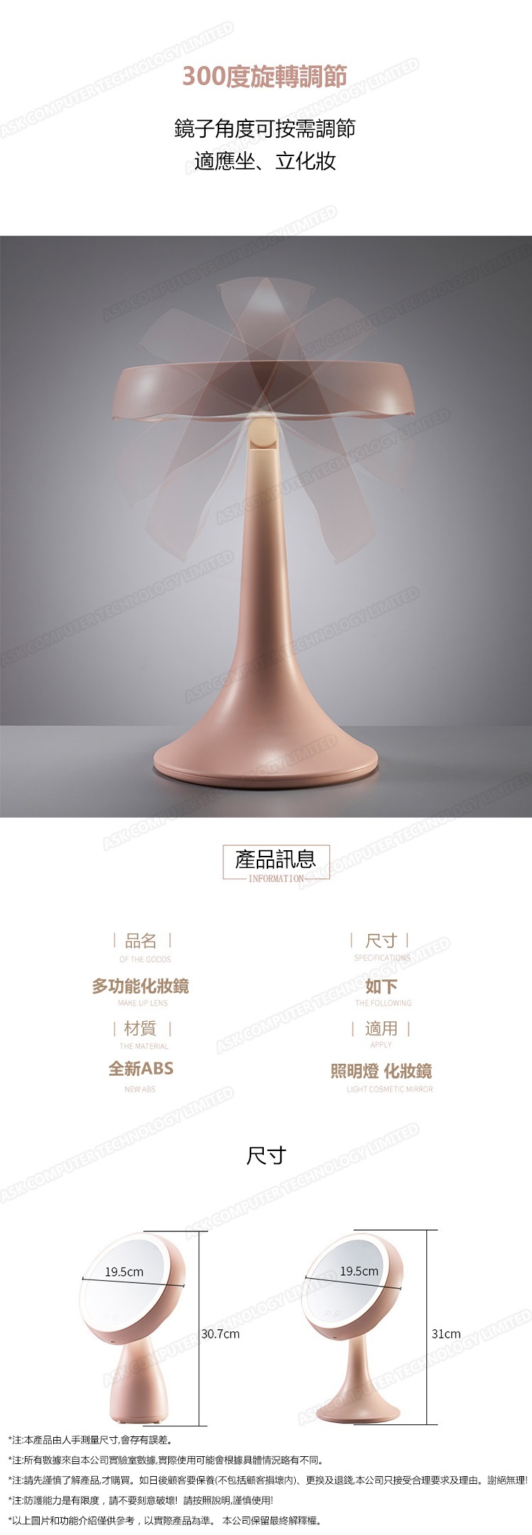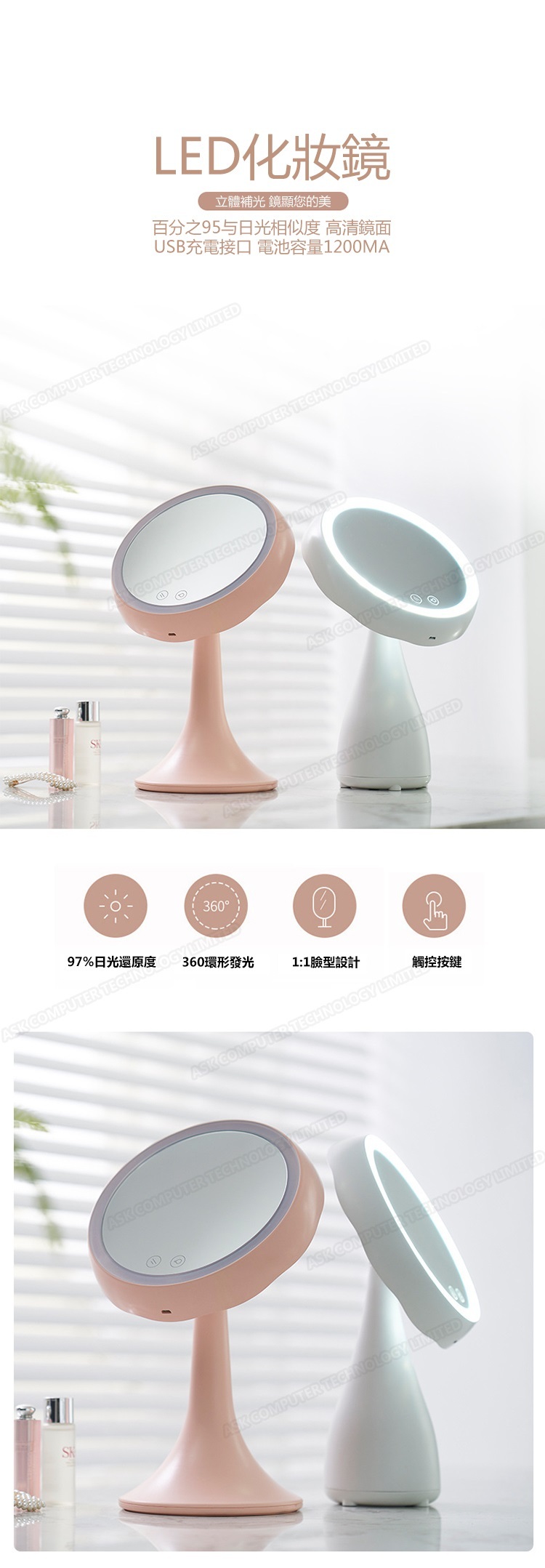 韓國JK 智能台式LED燈充電式化妝鏡 梳妝鏡補光美妝鏡