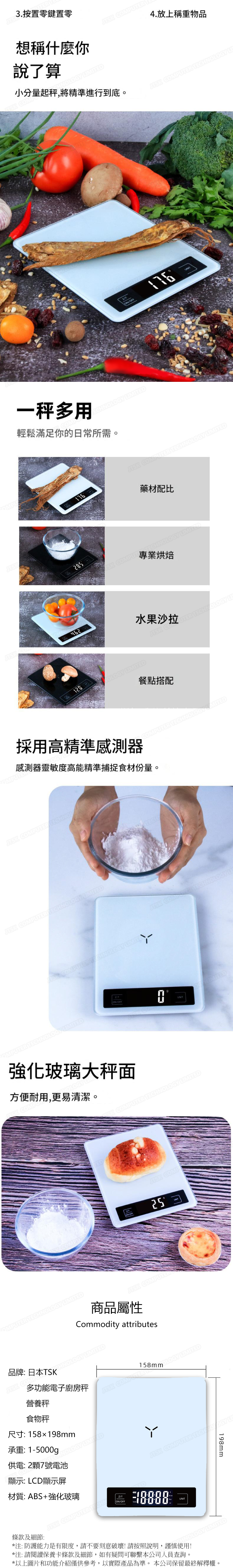 日本TSK 不鏽鋼多功能克秤智能廚房秤 藍牙APP營養秤 食物稱重